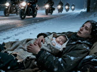 En medio de una tormenta de nieve, una mujer sin hogar dio a luz en la acera. Cuando sus gritos se desvanecieron en la fría noche, diez motores rugientes aparecieron en el oscuro horizonte…