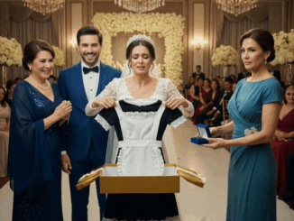 En la boda de mi hija, su suegra le regaló una caja. Al abrirla, encontró un uniforme de limpieza. Mi yerno sonrió y comentó: «Justo lo que necesita en casa». A mi hija se le llenaron los ojos de lágrimas y empezó a temblar. Me levanté en silencio y le dije: «Veamos el regalo que tengo para ti». Al abrir la caja, sus rostros se llenaron de asombro.