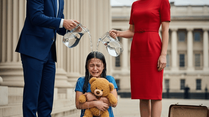 Diana se burló. Le echaron un cubo de agua fría encima, empapándole la ropa y haciéndola tiritar. Su maleta se abrió de golpe en la puerta. Los curiosos observaban en silencio, aunque nadie se atrevió a intervenir. Diana cerró la puerta de golpe, dejando a Emily arrodillada al sol, empapada y temblando, abrazada a su osito de peluche.