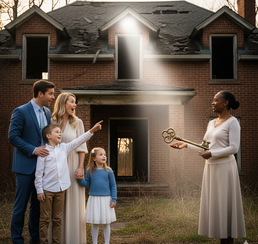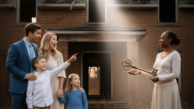 La estructura de dos pisos parecía haber estado abandonada durante décadas. Ventanas rotas, pintura descascarada, maleza creciendo hasta el porche. Pero algo hizo sonreír a Keisa por primera vez en semanas. Reconoció la casa al instante. “Mamá, esta casa parece embrujada”, murmuró su hija de 16 años, Yasmin, bajando del coche a regañadientes. “¿Estás segura de que papá Robert quería que te quedaras con esto?”. Keisha caminó lentamente hacia la puerta principal, con las manos ligeramente temblorosas, no de miedo, sino de emoción.