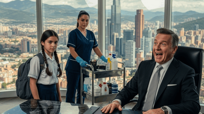 Caminó alrededor de ellos como un tiburón al acecho, disfrutando del evidente terror en los ojos de Carmen y la confusión en los de la pequeña Lucía. «Carmen, cuéntale a tu hija lo que hace mamá aquí todos los días», ordenó Ricardo con una sonrisa venenosa. «Lucía, ya sabe, señor. Yo limpio las oficinas». Carmen respondió en voz baja, agarrando el asa del carrito hasta que se le pusieron los nudillos blancos. «Exacto. Limpia». Ricardo aplaudió con sarcasmo, con la voz cargada de desprecio.