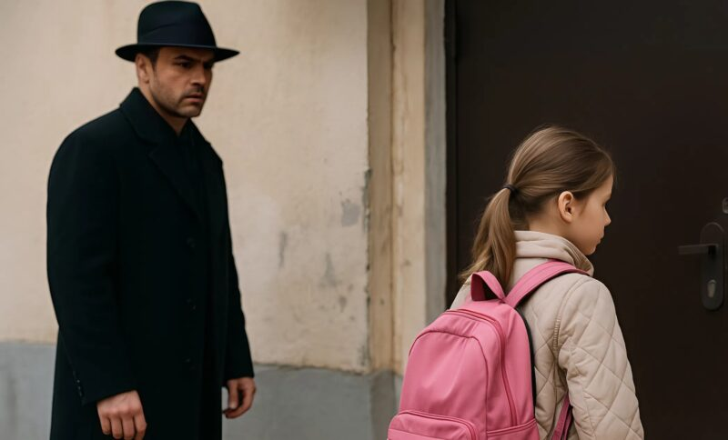 La niña de siete años caminaba a casa después de la escuela. En sus manos llevaba su mochila, con cuadernos que sobresalían de forma irregular, y en su hombro colgaba una bufanda que se le resbalaba constantemente. El patio estaba tranquilo y vacío. Solo cerca de la entrada había alguien.