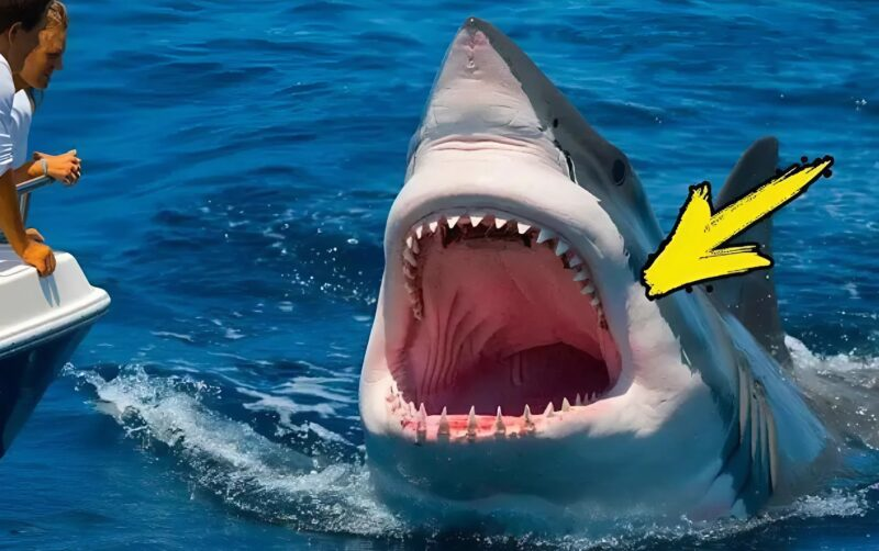 El depredador nadó cerca, intentando abrir aún más las fauces, y de repente los pescadores vieron algo extraño dentro de su boca. 😱😱 Continúa en el primer comentario. 👇 👇