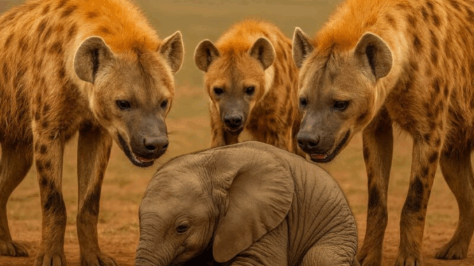 Una manada de hienas rodeó a un pequeño e indefenso elefante bebé, listo para atacar, pero no creerás quién acudió a su rescate.