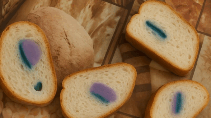En casa, corté el pan para ponerlo en la mesa. Sin embargo, noté algo extraño en el interior 😨. Al principio, pensé que podría ser moho o un defecto en la masa. Pero el color era inusual —verde amarillento— y la masa se sentía suave y no parecía pan en absoluto 🫣.