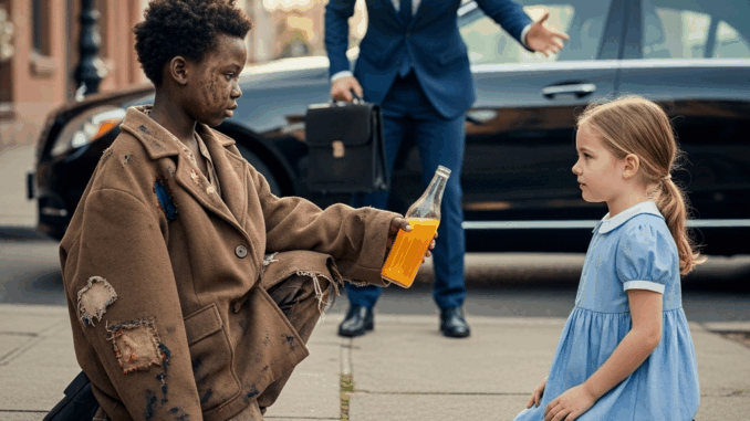 Al otro lado de la plaza, una chica de su edad estaba de pie. Su piel oscura brillaba de sudor, su ropa estaba rota y sucia, sus pies descalzos estaban cubiertos de polvo del pavimento. En sus manos, aferraba una pequeña botella de vidrio llena de un líquido espeso y dorado. A pesar de su pobreza, los ojos de la chica reflejaban determinación, como si custodiara un tesoro.