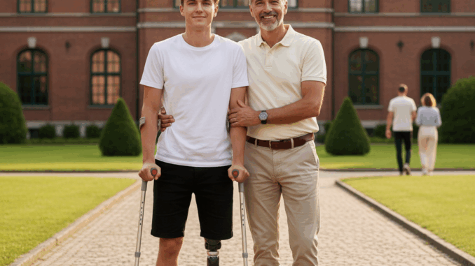 Las cosas empezaron a cambiar ese verano, cuando el Sr. Leo vio por casualidad a Nam, su alumno de séptimo grado, sentado y acurrucado en el porche de la escuela bajo la lluvia torrencial. Tenía la pierna izquierda amputada a la altura de la rodilla, envuelta en vendas sucias, y a su lado solo había una bolsa de tela con ropa vieja. Resultó que, tras el accidente de tráfico, los padres de Nam se habían ido uno tras otro. Nadie de su lado lo había adoptado. El niño vagaba desde la estación de autobuses hasta el porche de la escuela.