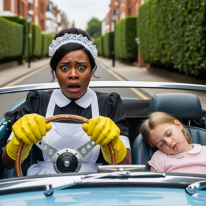 El estruendo de un motor Ferrari carmesí rompió la tranquilidad de la calle suburbana. Los curiosos observaban el opulento vehículo pasar a toda velocidad, con el delantal blanco de la criada ondeando dramáticamente mientras agarraba el volante, con las manos aún enfundadas en guantes de limpieza amarillos.