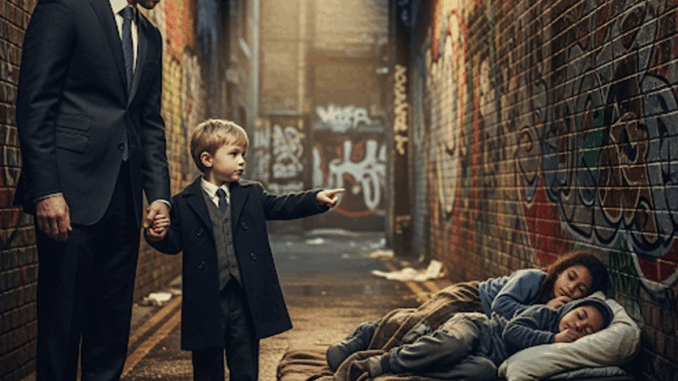 “¿Cómo se llaman?”, preguntó Pedro con la inocencia de sus cinco años, sentado en la acera sucia, sin preocuparse por ensuciar su costoso uniforme escolar. “Soy Lucas”, respondió el chico castaño, relajándose al darse cuenta de que este chico de su edad no representaba ninguna amenaza, a diferencia de los adultos que solían echarlos de los espacios públicos. “Y este es Mateo, mi hermano menor”, añadió, señalando con ternura al chico moreno que estaba a su lado. Eduardo sintió que el mundo giraba aún más rápido, como si el suelo hubiera desaparecido bajo sus pies.