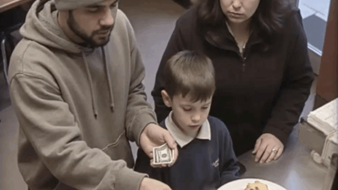 Momentos después, entraron una madre y su hijo pequeño. Se acercaron al mostrador con ojos esperanzados y cinco dólares arrugados en la mano, pidiendo el desayuno especial. “No es suficiente”, dijo la cajera con sequedad, despidiéndolos con un gesto de desdén. El rostro del niño se ensombreció y su madre se encorvó al darse la vuelta para marcharse.
