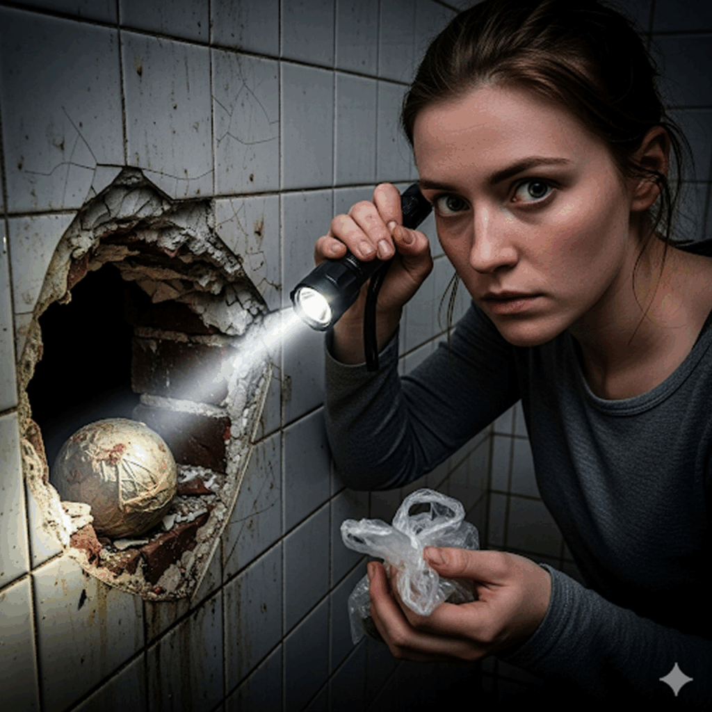 Toqué una baldosa. Se tambaleó. Un movimiento, y un trozo cayó al suelo, revelando un agujero negro en la pared. Me quedé paralizado, con el corazón latiendo con fuerza. Dentro había algo escondido. Metí la mano y saqué una bolsa de plástico. Luego otra.