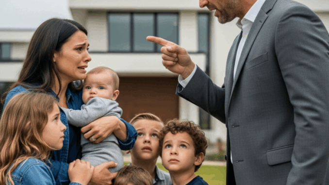 Magdalena permaneció en silencio, con el corazón encogido, mientras cinco pares de ojitos la observaban con temor. «Ernesto, por favor, son tus hijos», susurró, pero él ya no la escuchaba. Solo los veía como una molestia y a ella como una carga muerta. Con una copa de vino en la mano y el rostro endurecido por el desprecio, señaló hacia la puerta principal.