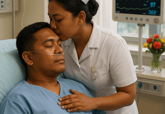 Esa noche, Ananya estaba de guardia. Solo había una tenue luz amarilla en el pasillo. Entró en la habitación, se sentó junto a la cama y cambió la vía en silencio. De repente, un extraño pensamiento cruzó por su mente: «Nunca despertará… Un beso… ¿Qué pasa…?».