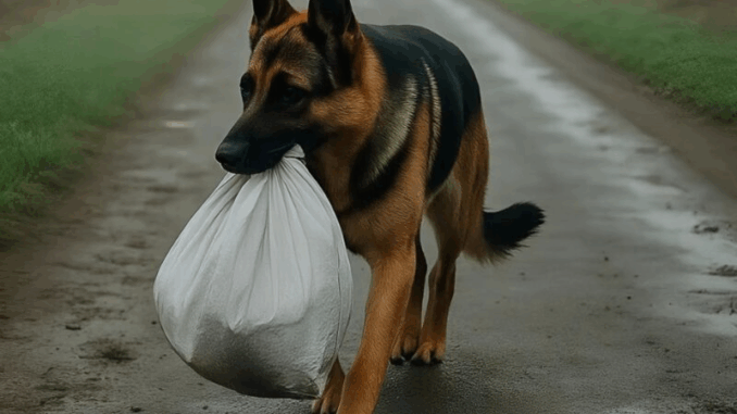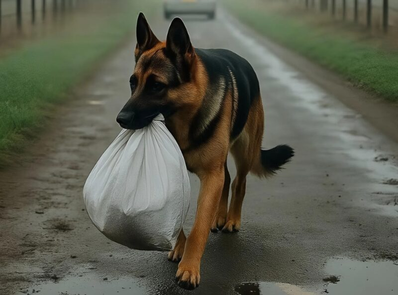 Una mujer vio a un pastor alemán caminando por la calle con una bolsa blanca en la boca. De repente, un coche se detuvo cerca, el conductor le arrebató la bolsa al perro y se marchó.