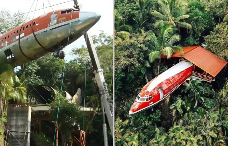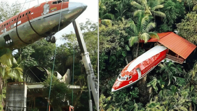 Un hombre compró un avión antiguo y decidió convertirlo en un hotel de ensueño . Primero, lo desmanteló y transportó el fuselaje metálico a la selva tropical en cinco camiones