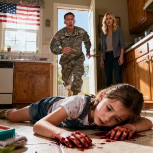 La luz del sol afuera era cálida y dorada, pero dentro de la estrecha cocina, las pequeñas manos de Emma temblaban. Solo tenía ocho años, pero el mango del trapeador se sentía más pesado que un rifle. Su madrastra, Claire, estaba de pie junto a la puerta, con los brazos cruzados y una sonrisa fría torcida en sus labios.