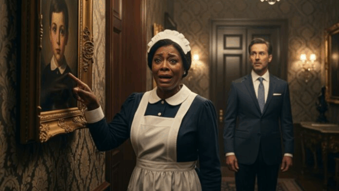 Una tarde, una nueva empleada doméstica llamada Amara, una amable mujer negra de unos cincuenta años, se detuvo en el pasillo cerca de un retrato. Era una pintura de Leo de niño: ojos grandes, expresión dulce, sosteniendo un avión de juguete. Ethan ya casi no la miraba, pero la mantenía allí porque quitarla le parecía como abandonar la esperanza por completo.
