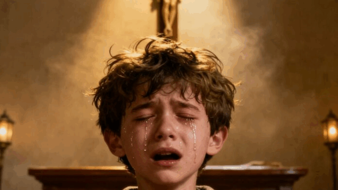 Esa tarde, mientras la luz del sol se filtraba a través de las vidrieras, Alan se sintió abrumado por la emoción. Sollozó con fuerza, con los hombros temblando. “¿Por qué no vuelve…? ¿Por qué?”