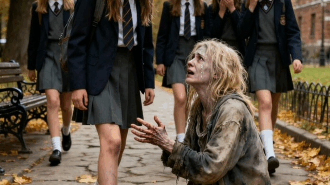 Todas las tardes, después de clase, Clara Carter, de catorce años, volvía a casa caminando con sus dos mejores amigas, Mia Thompson y Jordan Ellis , a través del pequeño barrio residencial de Brookridge, Ohio . Su ruta siempre las llevaba frente a Maple Park , donde una mujer sin hogar, envuelta en varias chaquetas desparejadas, estaba sentada en un banco de la esquina. Su cabello castaño enmarañado y sus ojos cansados la hacían parecer mayor de lo que era.