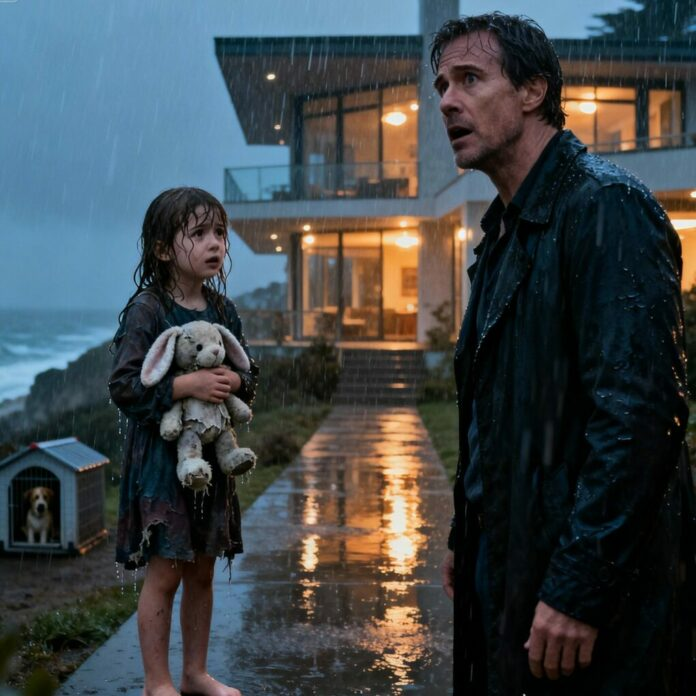 Ethan se quedó paralizado. Al principio, pensó que lo había imaginado. Luego se giró y la vio. Una niña pequeña, empapada y descalza, mirándolo fijamente a través de la tormenta.