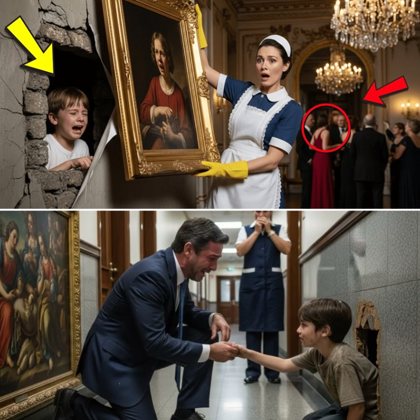 La madrastra había inventado el viaje, pero el sonido confirmó las sospechas de la criada. El heredero estaba encerrado en algún lugar de la casa. Decidida, investigó el sonido y descubrió al niño hambriento y aterrorizado escondido en un rincón oscuro tras un pesado cuadro en la pared. Carmen López observaba a los invitados entrar y salir con ojos cansados y atentos.
