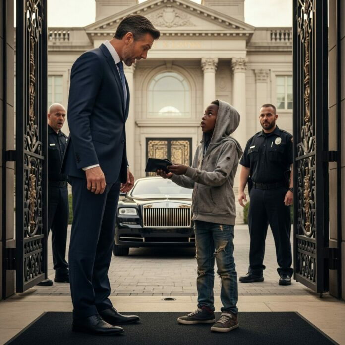 Antes de que Marcus pudiera protestar, una voz grave llamó desde la entrada. Un hombre alto con un traje caro se acercó. El mismísimo William Harrington. Miró al chico y luego a la billetera que llevaba en la mano.