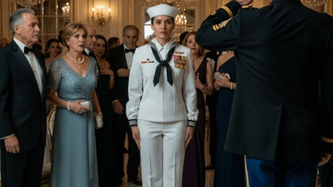 Mi padre se giró, la irritación se transformó en confusión. Mi madre se quedó paralizada a media respiración, con las perlas deslizándose ligeramente por su garganta. Y entonces se detuvo frente a mí. Con los ojos clavados en los míos, uniforme impecable, las medallas reflejando la luz, levantó la mano en un preciso saludo.
