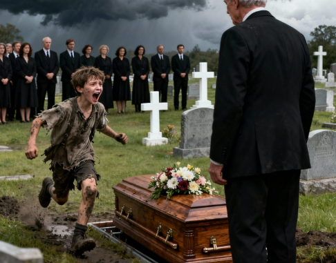 “¡Tu hija sigue viva, hay alguien más en el ataúd!” El chico negro sin hogar se apresuró a revelar un secreto que conmocionó al multimillonario.