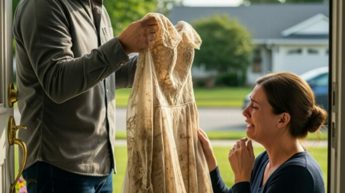 Explicó entrecortadamente: Había ido directo al centro de donaciones. Los trabajadores recordaban un hermoso vestido de encaje en una funda transparente. Le dijeron que una voluntaria local, la Sra. Caldwell, lo había recogido esa misma mañana.