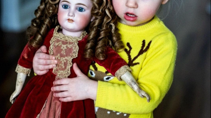 Tenía unos ojos azules brillantes, muy abiertos. Y sostenía una muñeca más pequeña en sus brazos de tela.