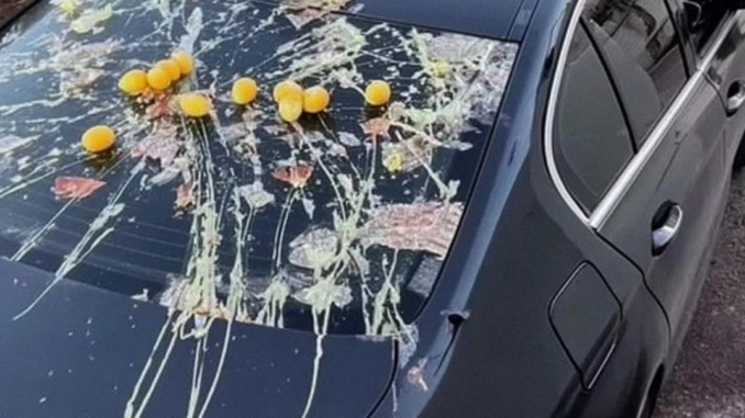 No perdí el tiempo. “¿Viste quién le tiró huevos a mi coche?”